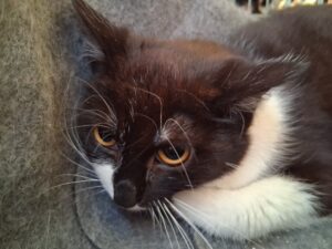 Velmi miloučká kočička Ariel byla pro nás největší oříšek. Přišla jako vysokobřezí, bohužel (několik dní před porodem) o koťátka přišla a zatím se s tím srovnává. Je zaskočená, smutná, asi i unavená životem. Je kontaktní, jen mazlení zatím nevyhledává. Jistě se to časem změní, když dostane své zázemí, svou rodinu, bude z ní jistě rychle veselá kočička. Je čistotná, zatím často v záchodu i spinká, ač má k dispozici pelíšky. Upřednostníme adopci do společnosti jiné kočičky, pejsky zatím nezná.