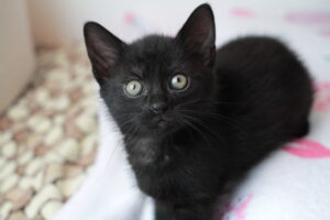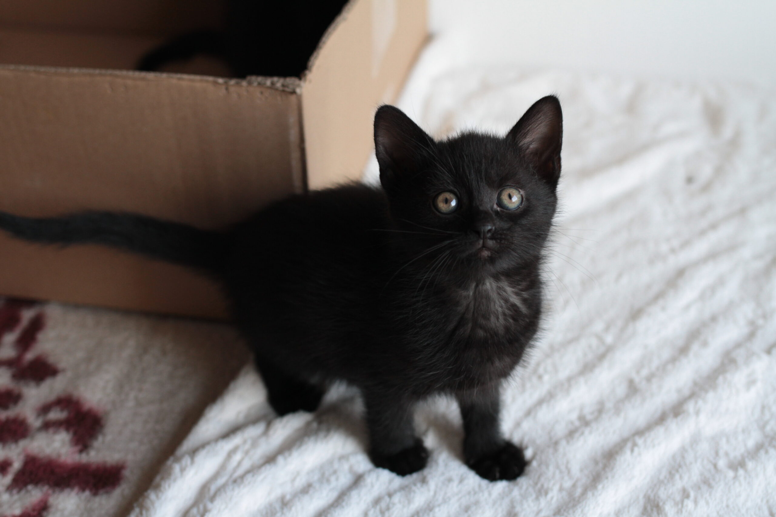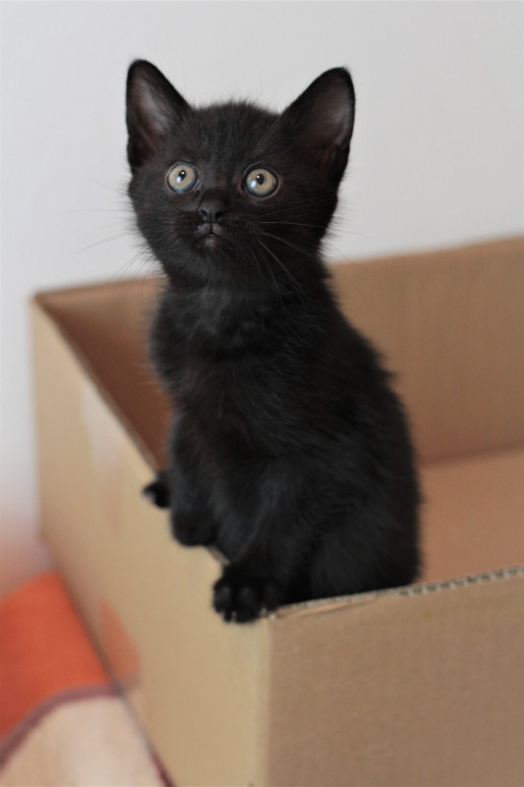 Baghíra je jednou ze dvou černých sestřiček, jsou téměř identické, až na pár detailů a pak jeden zásadní rozdíl v povaze - Baghíra je strašně zvědavá a tak je vždy u všeho první, vše ji zajímá u všeho asistuje; její sestřička je naopak velmi zdrženlivá a vše skepticky pozoruje z povzdálí. Baghi se už nechá hladit a je to jen otázka času, kdy přijde na chuť mazlení, zejména až už nebude s maminkou. Bude svěřena do adopce k dalšímu kočičákovi/kočičce, nebo s některým ze svých početných sourozenců, nikoliv však jako jedináček. Pouze do bytu.
