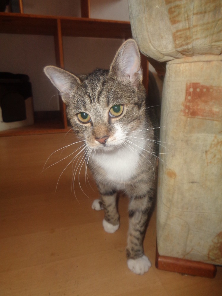 Bambulka nám roste jako z vody a začala být velmi mazlivá. Přišla na to, že drbání je nad všechna pomyšlení a chodí si sama pro pohlazení, vrní, mňouká... Je to veselá a hravá kočičí slečna. Nyní je i ve společnosti morčátek, nevadí jí ani pejsci, uvítá ale klidnější domácnost. Je čistotná a do adopce půjde výhradně dovnitř.
