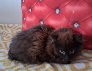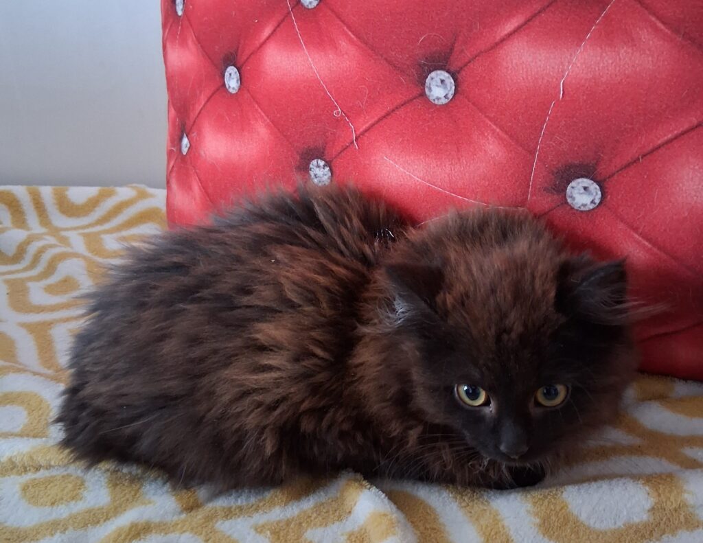Coudy - jsem takový malý bojácný medvídek. Protože maminka mě od malinka učila na lidi syčet, tak na depozitní tetu stále syčím, ale vlastně ani nevím proč. Vždyť ona mi dává baštu, která mi moc chutná, chová mě a mazlí mě. Miluju plyšové myšky a chrastící míčky. Jsem velmi čistotný prcek, rád spinkám v kukani, kde nejsem skoro ani vidět. S kočičkama jsem velký kamarád, s dětmi zatím ne, ty jsou na mě moc akční a já se bojím. Pejsek mi po chvilce nevadí. Bydlení určitě budu hledat pouze uvnitř, jako malý jsem si venkovního bydlení a trápení užil dost. Vzhledem k mé delší srsti bude jistě také potřeba mě vyčesávat.