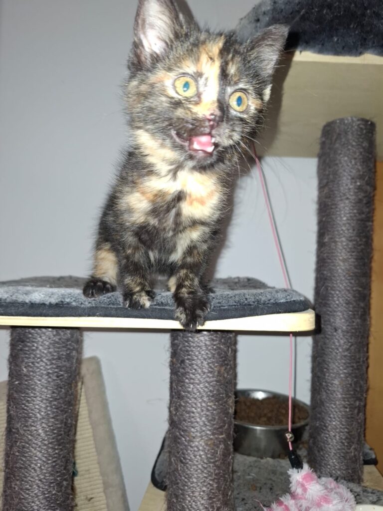 Darinka je milá, mazlivá holčička. Je zvyklá na další kočky, pejsky, děti. Je absolutně čistotná, moc ráda baští kapsičky a nepohrdne ani granulkami. K adopci pouze do bytu.