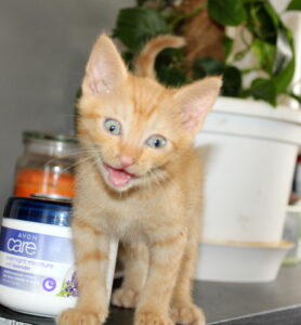 Fermínek je nejbláznivější kotě z naší "oranžové" pětice 🙂 . Je to velice kontaktní a hravý kluk, kterého je všude plno. Baští granulky a kapsičky, je 100% čistotný.