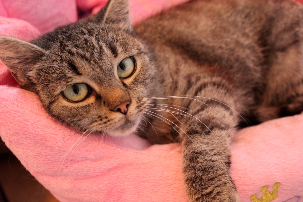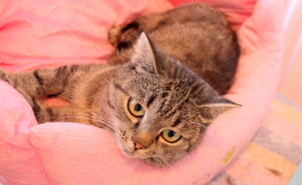 Kočička Pia byla nalezena v Protivíně. Důvodem jejího okamžitého přijetí byla její extrémní vyhublost, kočička při pohmatu měla úplně prázdné břicho. Při vyšetření na veterině byla zjištěna brániční kýla, kdy Pia měla všechny orgány, které se normálně nachází v dutině břišní, umístěné v hrudníku a utlačují plíce. Na rozhodnutí jsme měli jeden den, zkusit operaci, kde je šance 50% a nebo uspání, neboť kočička by se časem udusila. Bylo rozhodnuto celkem rychle, Pia měla velkou vůli žít, baštila a její orgány i v jiném umístění v těle nějakým záhadným způsobem fungovaly. V neposlední řadě rozhodla její povaha, je to milá, klidná a moc přátelská kočička, která si opravdu zasloužila šanci na život. Operace proběhla dobře, všechny přemístěné orgány fungují, jak mají a Pia začíná hledat nový domov. Její očkování je naplánováno nejdříve na listopad a kastrace doporučena nejdříve v únoru, kvůli rekonvalescenci po velkém operačním zákroku.