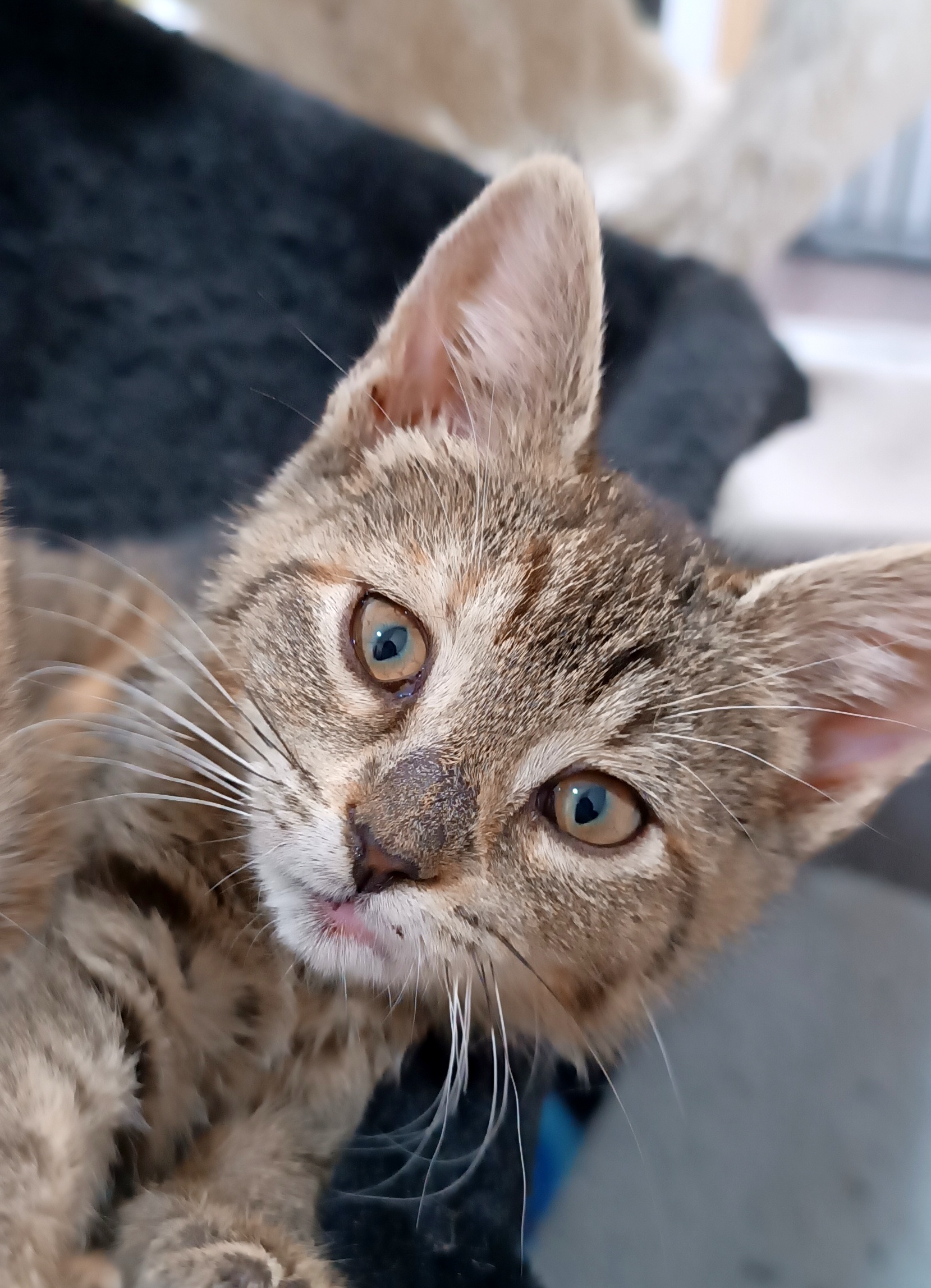Scara je vrnící klubíčko č.2 , velice kontaktní, milující lidi, kočky i psy. Čistotná, baští hlavně kapsičky, ale nepohrdne ani granulkami. Nový domov hledáme ideálně k další kočce v domácnosti.