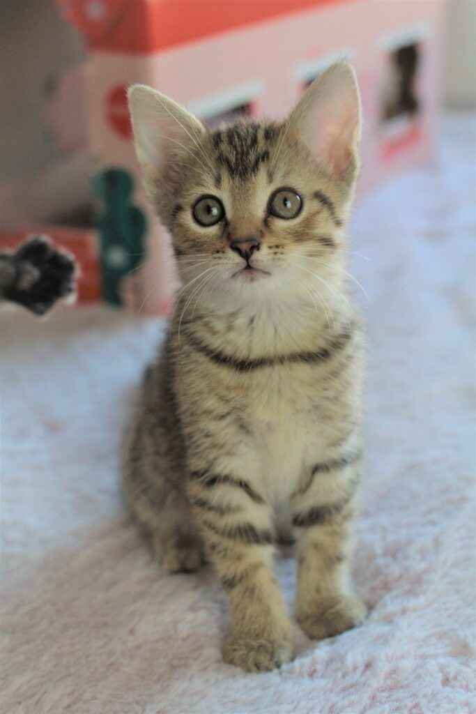Švitorka je jednou z téměř identických mourovatých holčiček plaché kočičky. Už se vymazlila a je velmi hravá a zvědavá. Bude svěřena do adopce k dalšímu kočičákovi/kočičce, nebo s některým ze svých početných sourozenců, nikoliv však jako jedináček. Pouze do bytu.